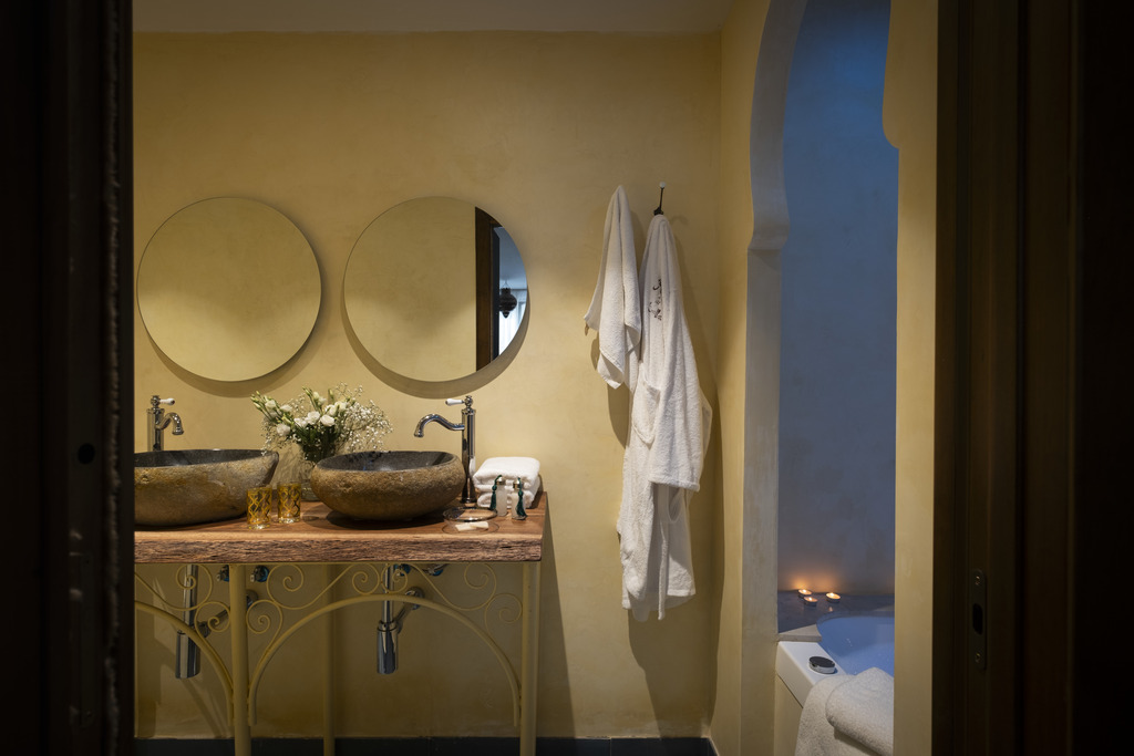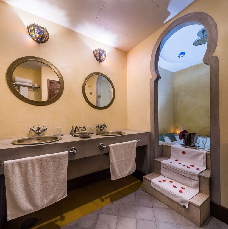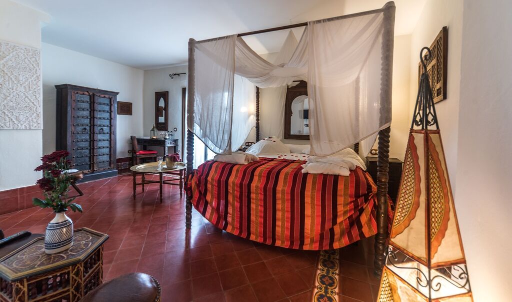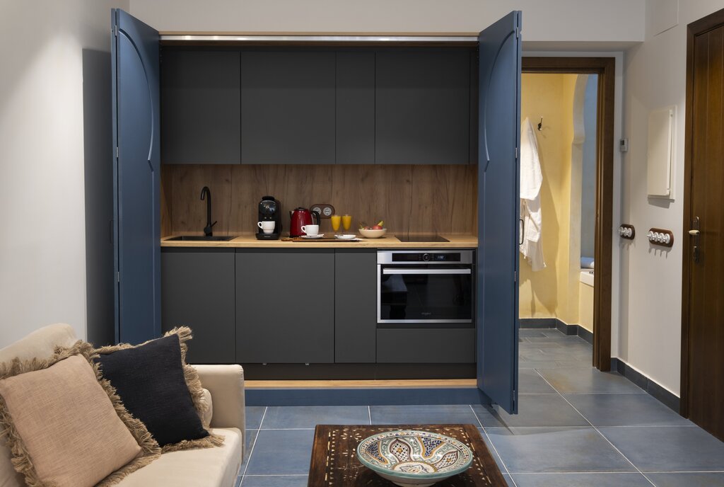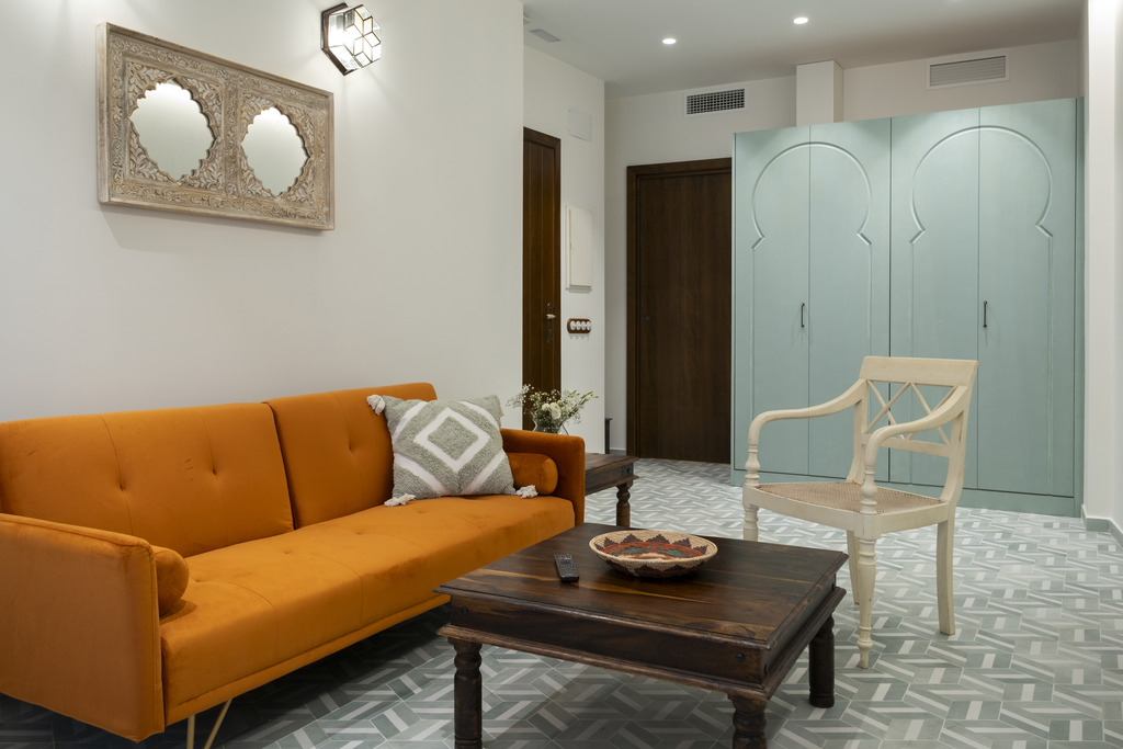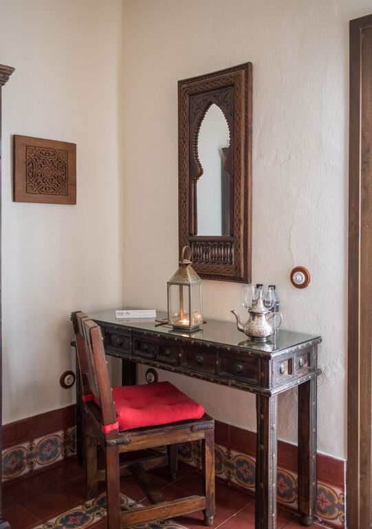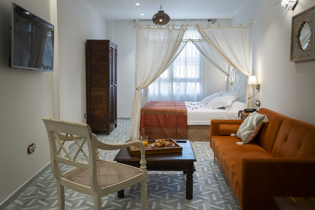 Amor y encanto en una estancia inolvidable. Habitaciones Románticas con Jacuzzi en planta baja, cada una con un toque andalusí único—ideales para aniversarios o momentos especiales. Zyriab: Jacuzzi cuadrado, ducha independiente y una encantadora cama con dosel. Abenamar: Con un jacuzzi redondo, cama dosel y un patio privado para disfrutar de momentos de tranquilidad y aire libre. Ysbiliya y Almakrina: Suites independientes en un anexo tranquilo, cada una con una acogedora cocina americana—perfectas para estancias más largas o mas privacidad.